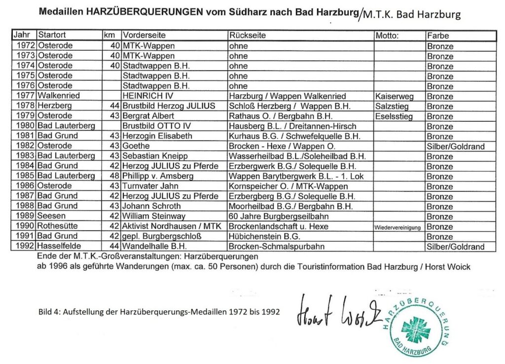 Die sehr ansprechenden Erinnerungsmedaillen mit unterschiedlichen Harzer Motiven kamen bei den Teilnehmern sehr gut an und waren begehrt. Die ständig steigenden Teilnehmerzahlen sprechen für sich. Das Krodobad als Zielort wird zu klein und die Galopprennbahn wird das neue Stadion für die Abschlussveranstaltungen, mit Teilnehmern und vielen Zuschauern.