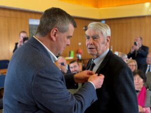 Es ist eine Art Krönung für ein vor allem auch ehrenamtliches Lebenswerk, das seinesgleichen suchen dürfte: Bundespräsident Frank-Walter Steinmeier hat Horst Woick das Verdienstkreuz am Bande des Verdienstordens der Bundesrepublik Deutschland verliehen. Den Orden überreichte Landrat Axel Saipa in einer Feierstunde im Rathaus der Stadt Bad Harzburg.